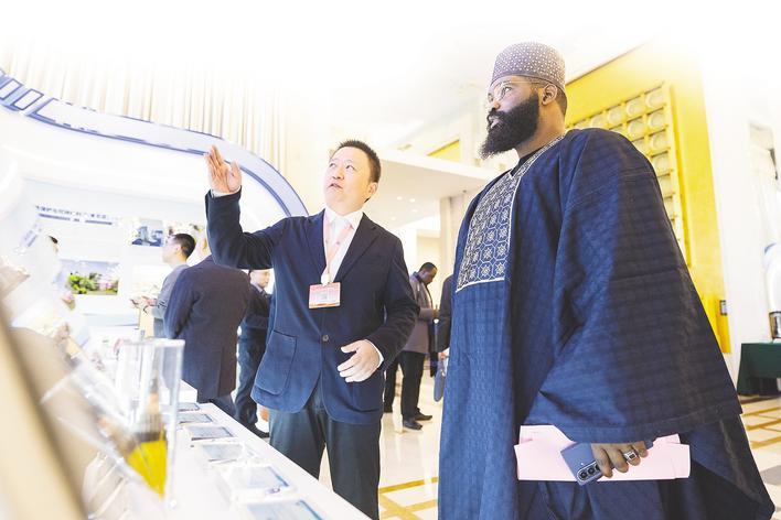 论坛工作人员向非洲国家嘉宾介绍中国科技创新项目。 (湖北日报全媒体记者何宇欣供图)